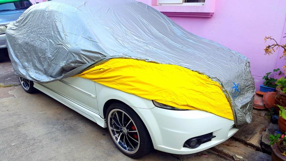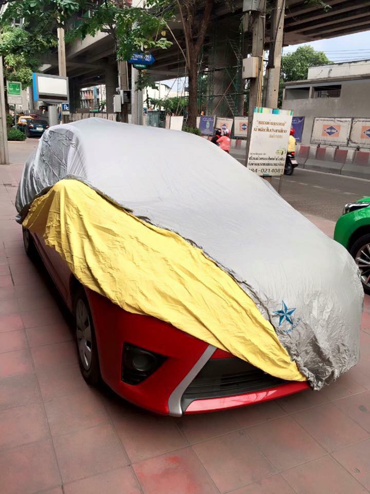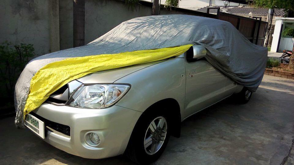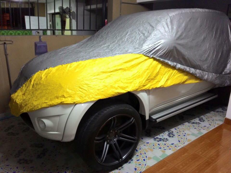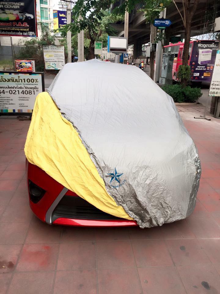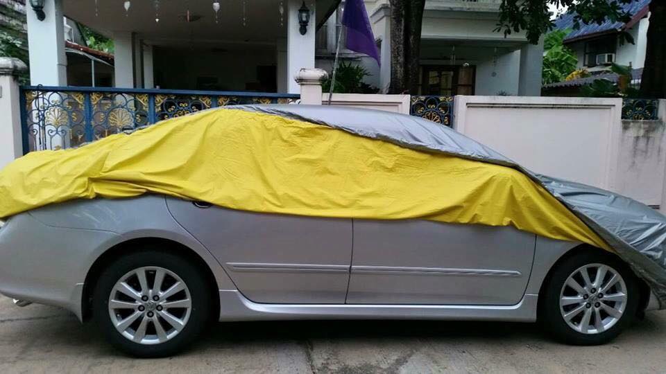 คุณสมบัติ : ผลิตจากผ้า PVC เคลือบมุก 2สี ด้านนอกสีเทาเงิน(สีบรอนด์) ด้านในสีเหลืองซึ่งสามารถคลุมได้ทั้ง2ด้าน มีความหนากว่าผ้าคลุมรถยนต์PVCเคลือบมุกแบบธรรมดา ผ้าคลุมรถยนต์2in1เชื่อมด้วยระบบไฟฟ้าทั้งผืน ไม่มีรอยตะเข็บ ไม่ทำให้ปลิวตามลม มีสายรัดรอบคัน เข้ารูป สวยงาม
