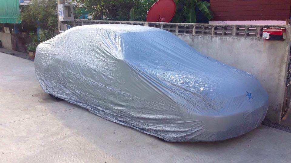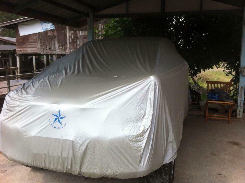 คุณสมบัติ : ผลิตจากผ้า PVC Extra 100% เคลือบมุกลามิเนตด้วยผ้าสปันบอลโพลีเอสเตอร์ ซึ่งมีความนุ่ม มีผ้าสำลีรองอยู่ด้านใน(ไม่เป็นขุย) จึงทำให้การปกป้องและนุ่มนวลกว่าผ้าคลุมรถทั่วไปถึง6เท่า ซึ่งมีทนทานและหนา มีความเงางามเนื้อผ้าได้รับการจดสิทธิบัตรกรมทรัพย์สินทางปัญญา ซึ่งเป็นบริษัทเดียวที่มีชั้นในเนื้อผ้าที่ผลิตจาก สปันบอนด์โพลีเอสเตอร์ สามารถป้องกันความชื้นได้ 100% ผ้าคลุมรถยนต์สปันบอนด์โพลีเอสเตอร์ เชื่อมด้วยระบบไฟฟ้าทั้งผืน ไม่มีรอยตะเข็บ ไม่ทำให้ปลิวตามลม มีสายรัดรอบคัน เข้ารูป สวยงาม